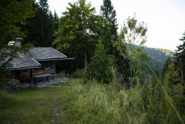 The AlmResidency is an artist residency in the Bavarian foothills of the Alps. For nine years now, five artists have gathered annually for an intensive ten-day period of work and research in two secluded mountain huts. The Ochsenhütte, with its history spanning over a century, offers three artists an inspiring home in the heart of a dense forest. The stove provides comforting warmth, while the nearby stream supplies fresh water. Higher up, the Jagaheisl gives two more residents space for creative work. A simple outdoor shower with a watering can in front of the hut offers a sweeping view down into the valley.